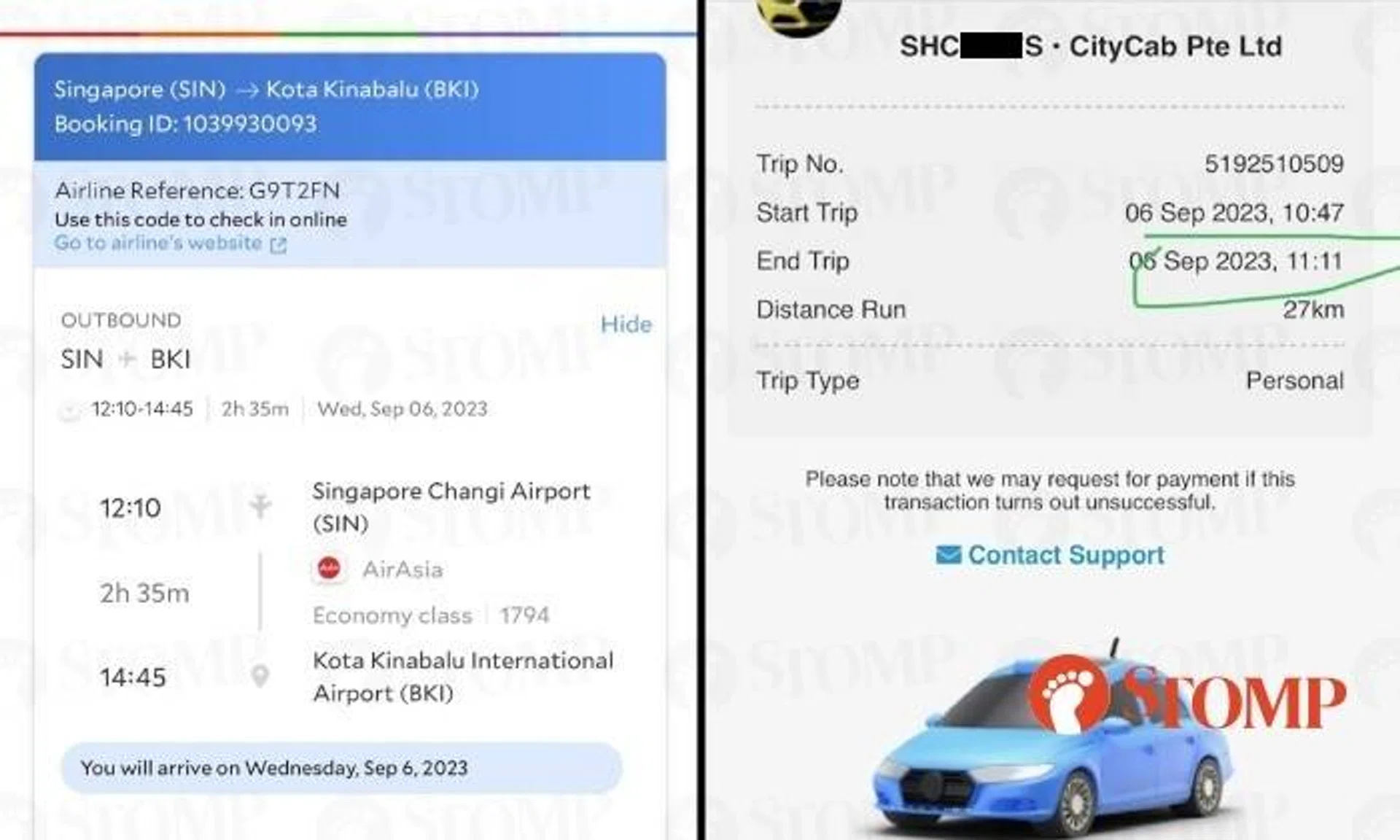 "I had a flight booked to Kota Kinabalu with the departure time 12.10pm on Sept 6. We reached Changi Airport at 11.11am and went straight to the automated self-check in booths.