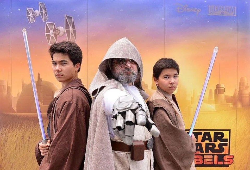 Mr Herve Cotton, 42, who was the first registered member of the volunteer-based Rebel Legion in Singapore two years ago, dressed up as Luke Skywalker while his two sons Alex, 13, and Olivier, 12, cosplayed as Anakin Skywalker and a Padawan respectively.