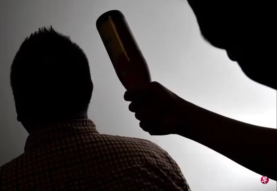 The defendant was furious and picked up a bottle of beer and approached the victim, then smashed it on the victim's head, causing the glass bottle to shatter.