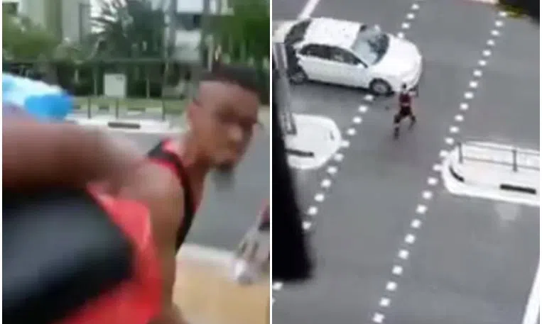 At the traffic junction in front of Buangkok Square Mall, he allegedly swung the weapon at Mr Chinthana, who fought back and managed to pin Fadhil down.