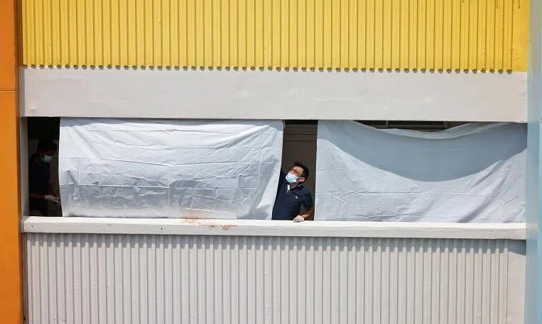 When The Straits Times visited the scene on July 27, the entire 10th floor had been cordoned off. Blood could be seen on the floor, parapet and walls of a unit.