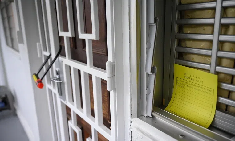 When The Straits Times visited the fourth-floor unit at about 1pm, there was a police notice on the window.