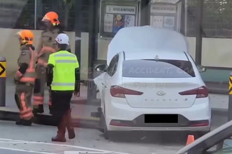 Another video shows Singapore Civil Defence Force (SCDF) officers carrying the driver out of the car and onto a stretcher.