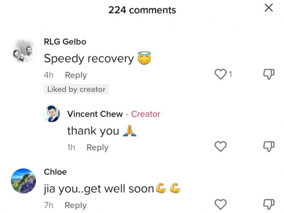 While warded, Mr Chew has kept himself busy documenting his recovery on TikTok, which in turn has gained him followers who urge him to stay positive.