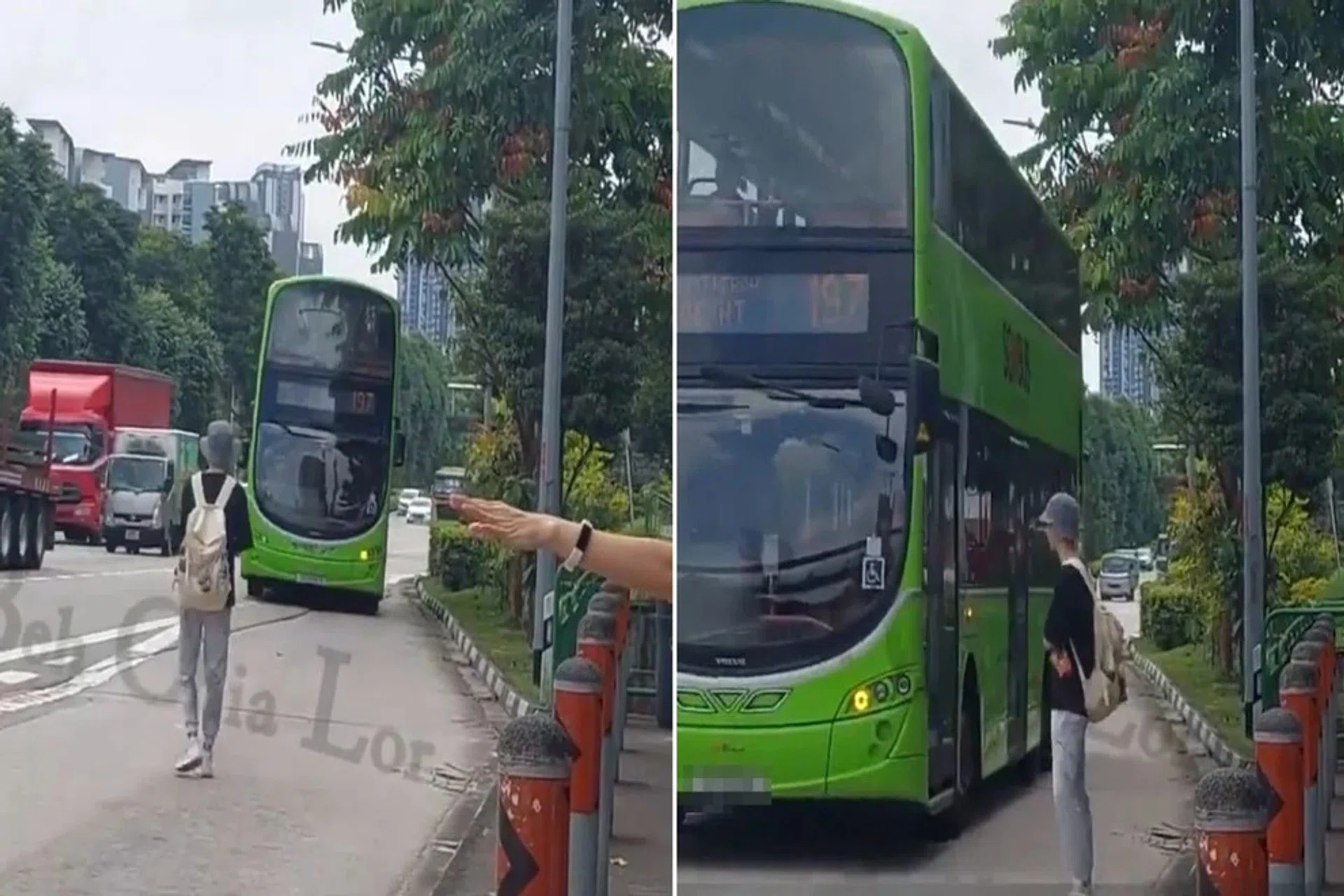 Upset that he missed his bus earlier, a man stood in the middle of the bay along the Ayer Rajah Expressway (AYE) to block the next arriving bus.