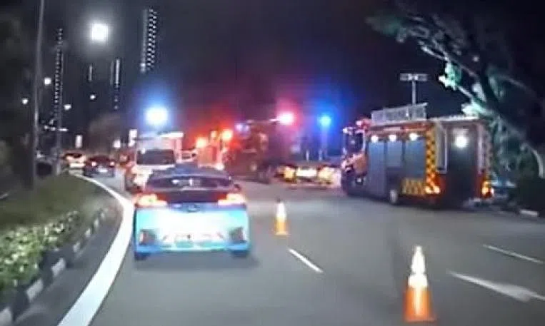 Dashcam footage shared on Facebook group SG Road Vigilante shows traffic being redirected to the left-most lane with multiple emergency vehicles at the scene.