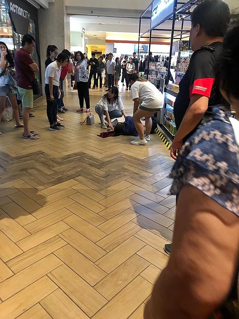 Mr Jerdy Ang, 21, a waiter at Patties and Wiches cafe, said his colleague saw the man fall.
