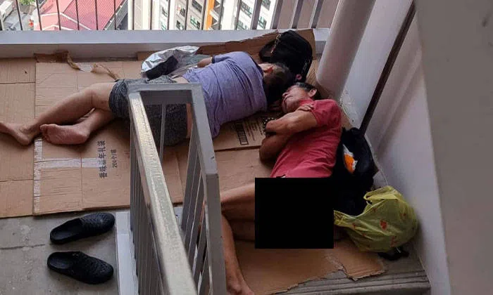 According to the resident, the man had been sleeping there for two months and was 'adamant' about staying near his girlfriend who stays in the same block.