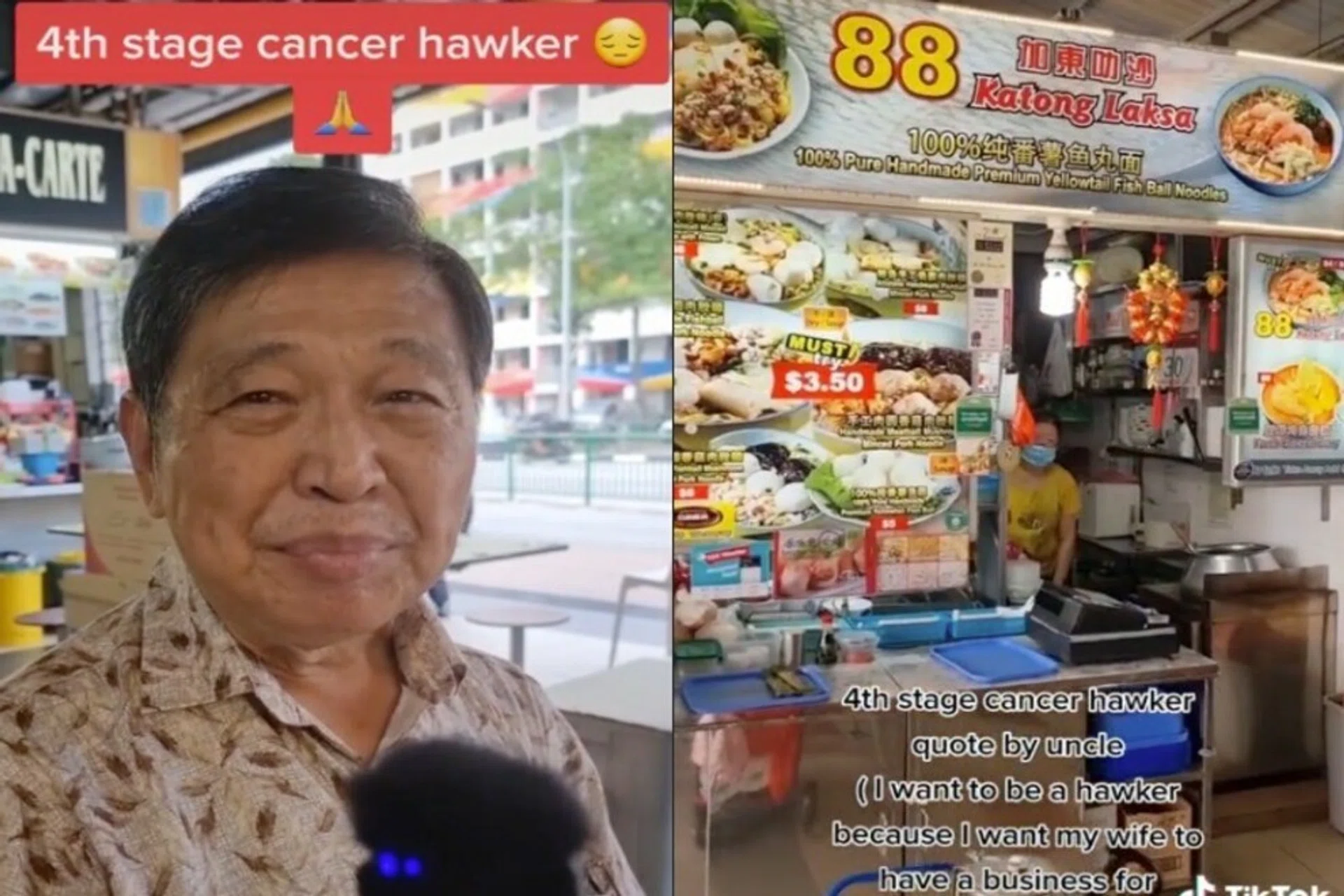 Man with stage 4 cancer sets up laksa stall with wife so she can support herself after his death