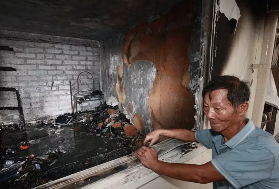 Mr Liu, 71, told Shin Min Daily News: "My nine-year-old son was also at home at the time but he loves playing games on his phone, so he probably didn't notice his brother playing with fire."
