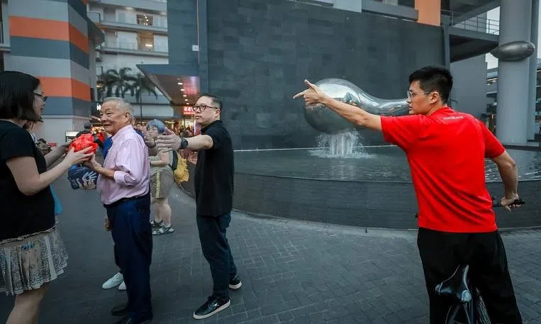 At around 7pm, the man rode a bicycle into the crowd and approached Mr Ng's team, shouting vulgarities and gesturing. At one point, he yelled at Mr Ng to "go home".