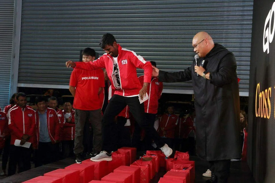 In a TikTok video of the event, Mr Selvam is seen falling to his knees and covering his face with his hands in disbelief when he learnt he had won the top prize.
