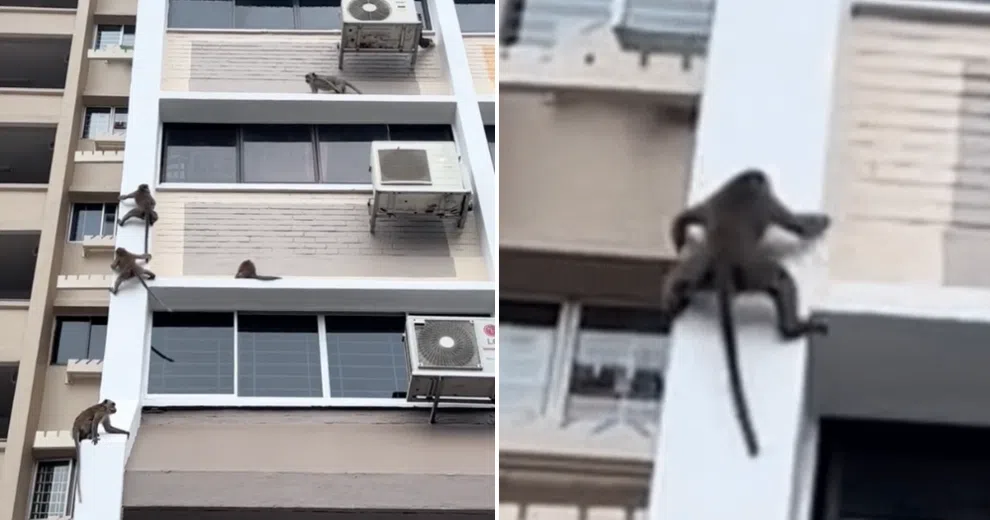 The agility of the tribe of long-tailed macaques that climbed down the block of flats at Jalan Besar on Saturday was captured by an awestruck Ms Victoria Loh on video.