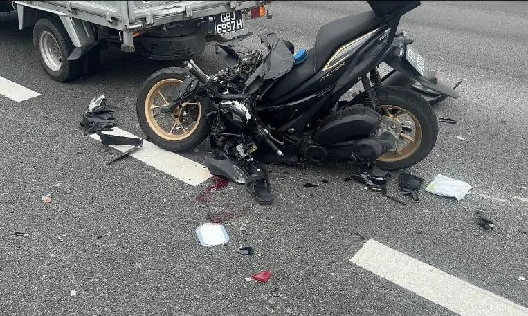 Mr Liew's wife, Ms Sandra Faustina, 32, who was also at the scene, told ST that the driver of the lorry told them that he had abruptly stopped his vehicle after the minibus in front of him had suddenly braked. The move caused the motorcyclist behind the lorry to hit the vehicle, according to the lorry driver.