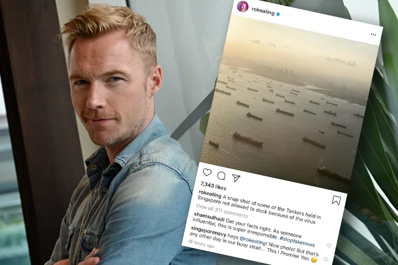The authority said this on Instagram to debunk claims by Irish singer Ronan Keating, who had posted on the platform on Sunday a photo of Singapore's port, showing about two dozen ships which he claimed were being held and unable to dock due to the virus.