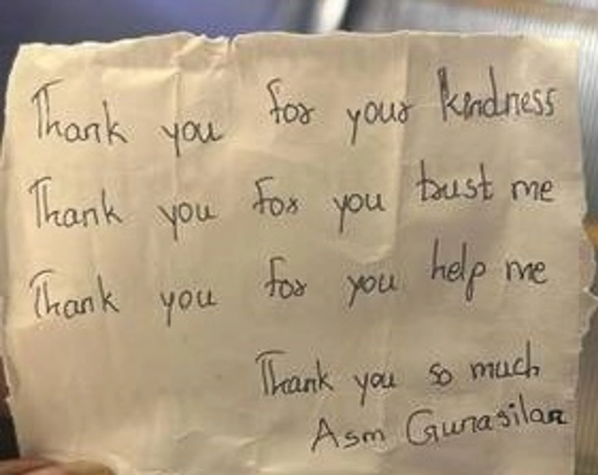 Silan shared a photo of the note that the woman had given him, in which she expressed her gratitude and signed off on.