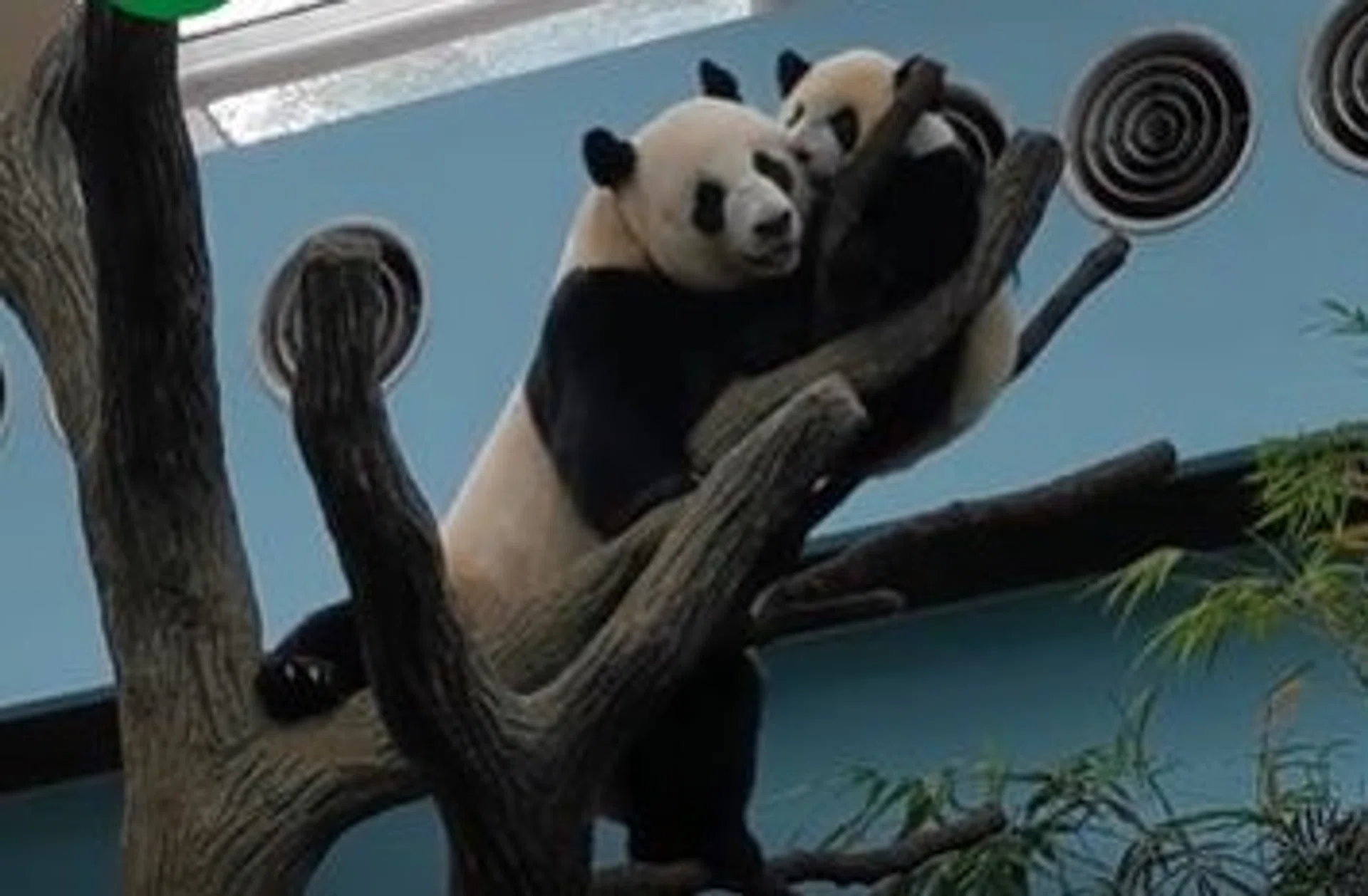 Panda cub Le Le at Singapore's River Wonders attraction has his favourite perch on a tree.