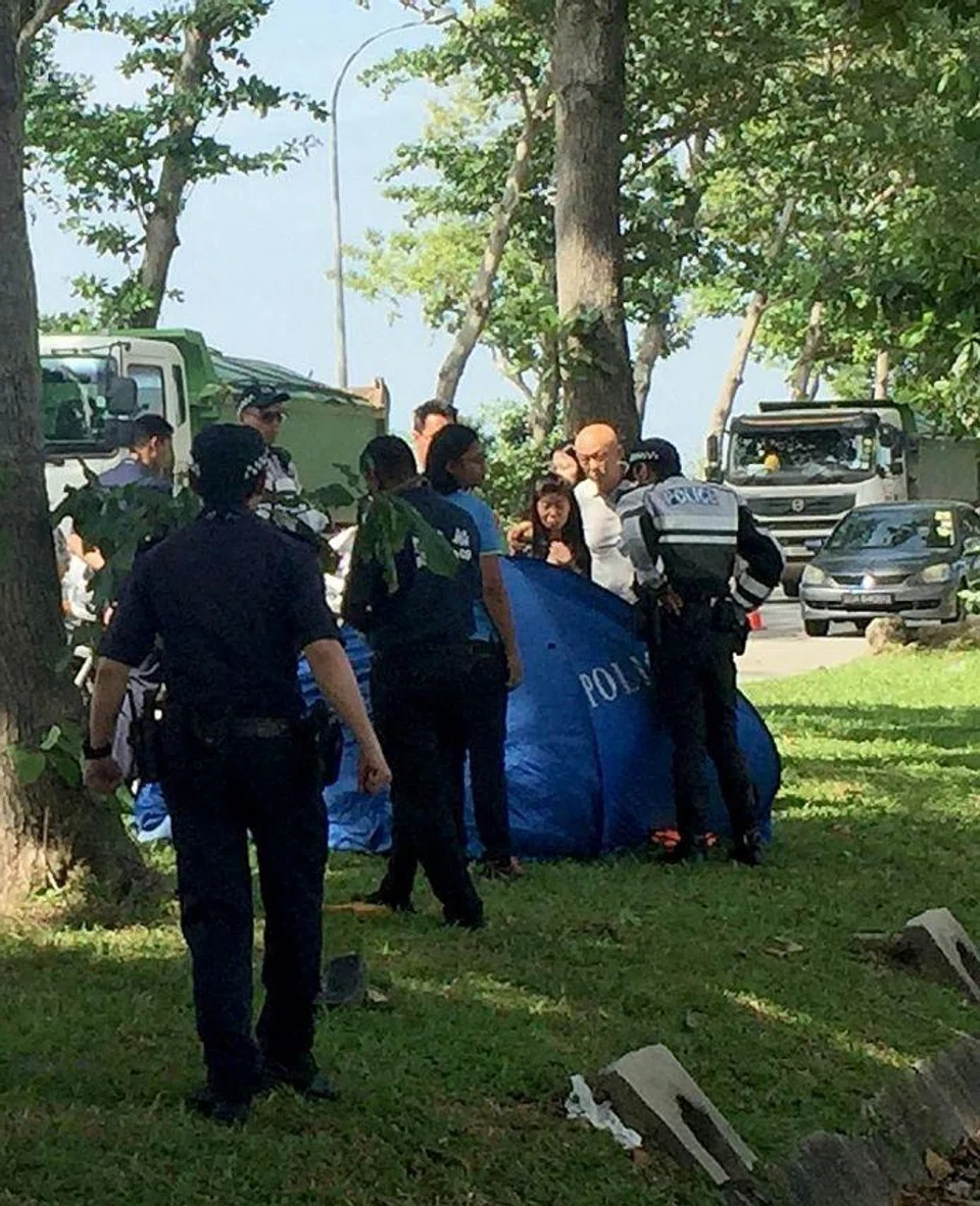 When Madam Tham and her Japanese husband, Mr Hiroyuki Matsuo, walked up to the blue tent covering their son's body, police personnel opened it.