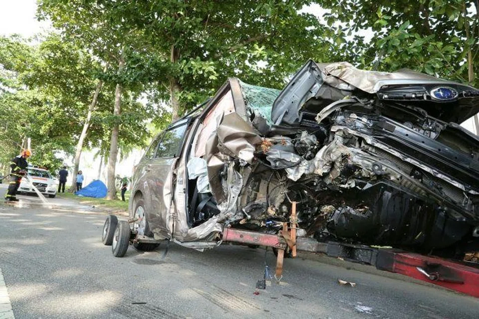 A Singapore Civil Defence Force (SCDF) spokesman said the car's five passengers were injured in the accident.