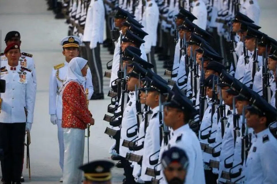 This is Madam Halimah's last parade as president, as her six-year term will end in September. She first attended NDP as a freshman MP for Jurong GRC in 2002. As Singapore's eighth president, Madam Halimah presided over her first parade in 2018.