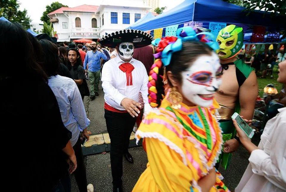 Miss Diana Parra (above), a researcher in her 30s who attended the event in traditional Mexican "skull: make-up, said: "I arrived in Singapore from Mexico just over a week ago and I had been looking for an event that celebrates the Day of the Dead.