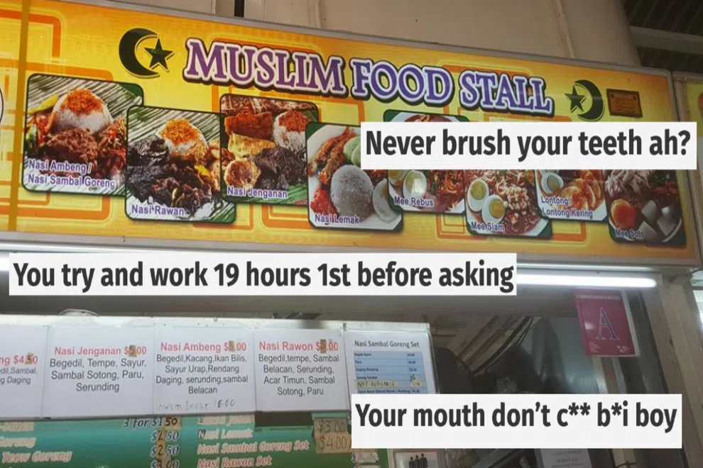 A Muslim food stall in Marsiling doesn't seem to be taking too kindly to online customer reviews, responding to negative feedback with sarcasm and even straight-up personal attacks.