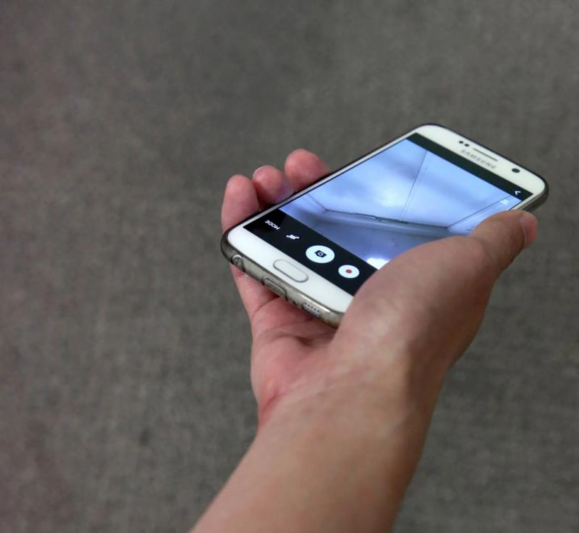 When he looked up, he saw a black phone with its camera lens pointing towards him. Not knowing who it was, he yelled out and opened the door.