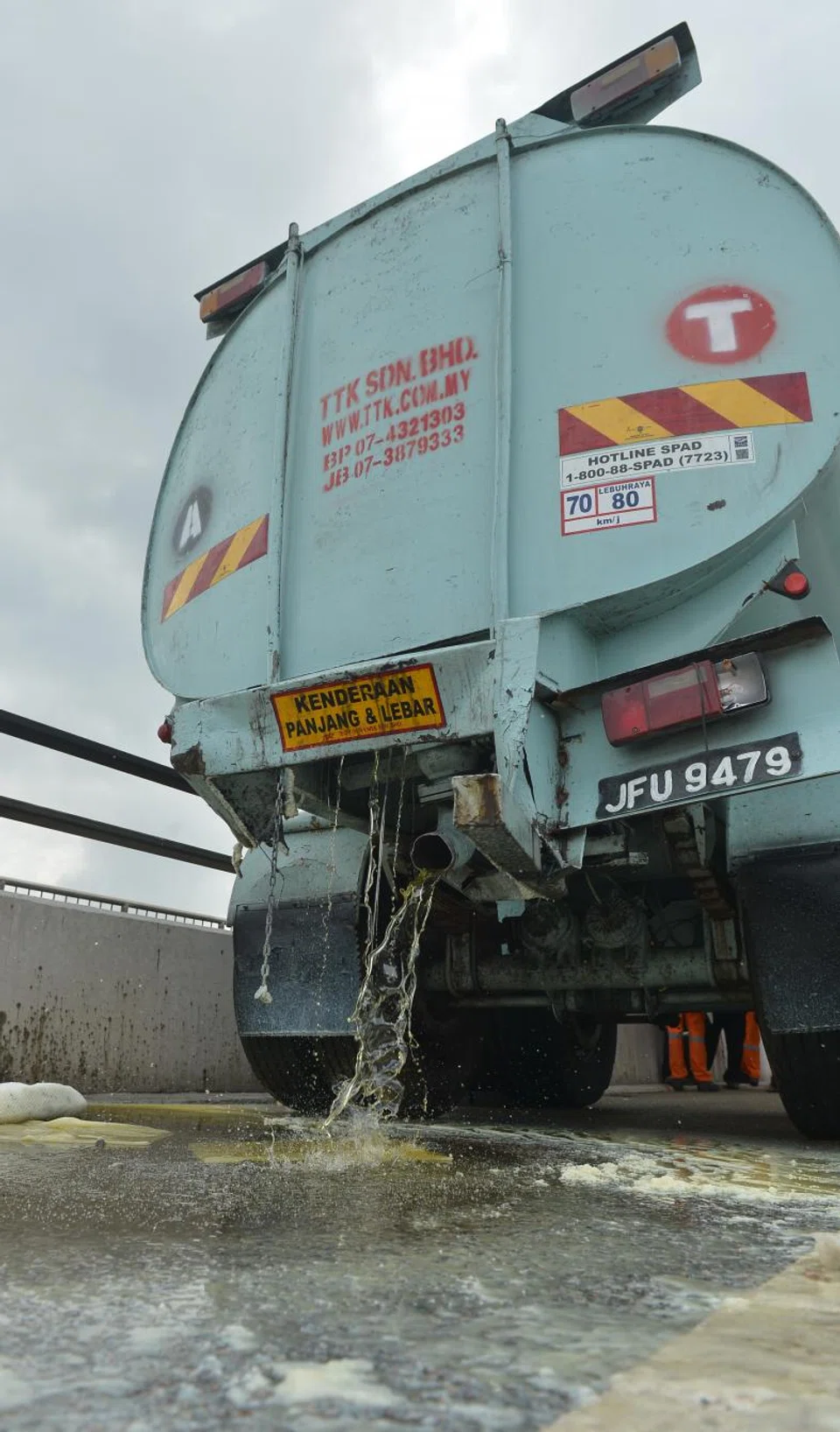 The spill, which occurred right after the Mandai Road exit towards the Pan-Island Expressway (PIE), was caused by a leak in a Malaysian-registered tanker carrying palm oil.