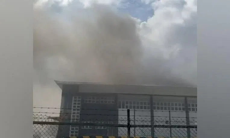 A video sent to Chinese-language daily Lianhe Zaobao showed smoke emitting from the second floor of a two-storey industrial building.