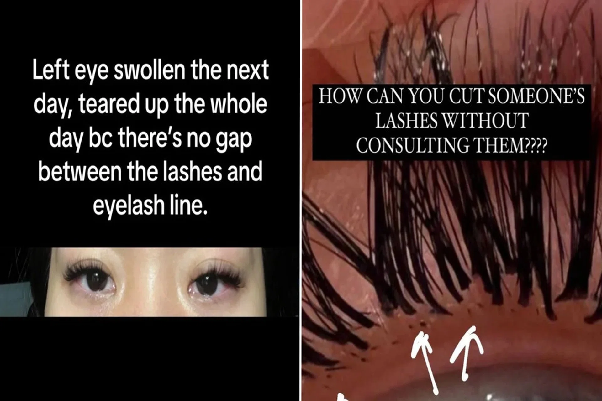 For one woman, however, two unfortunate experiences at the same salon left her with a swollen eye and an alleged unnecessary trim of her "eye curtains".
