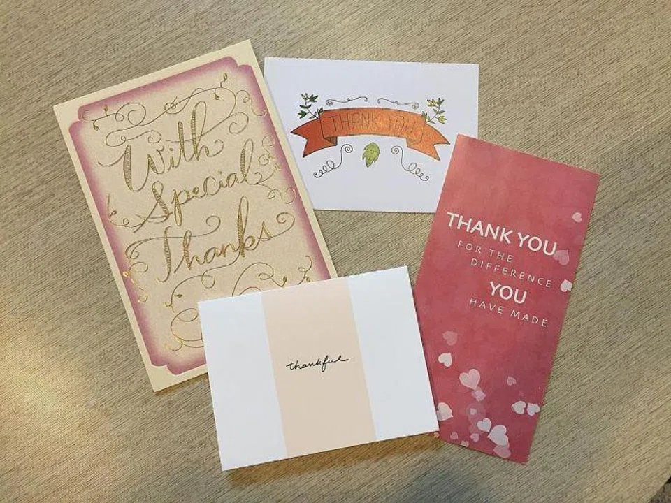 GRATEFUL: Thank you cards sent to Madam Tang Siew Ngoh's family from the people who received her dead sister's organs. TNP PHOTO: TAN TAM MEI