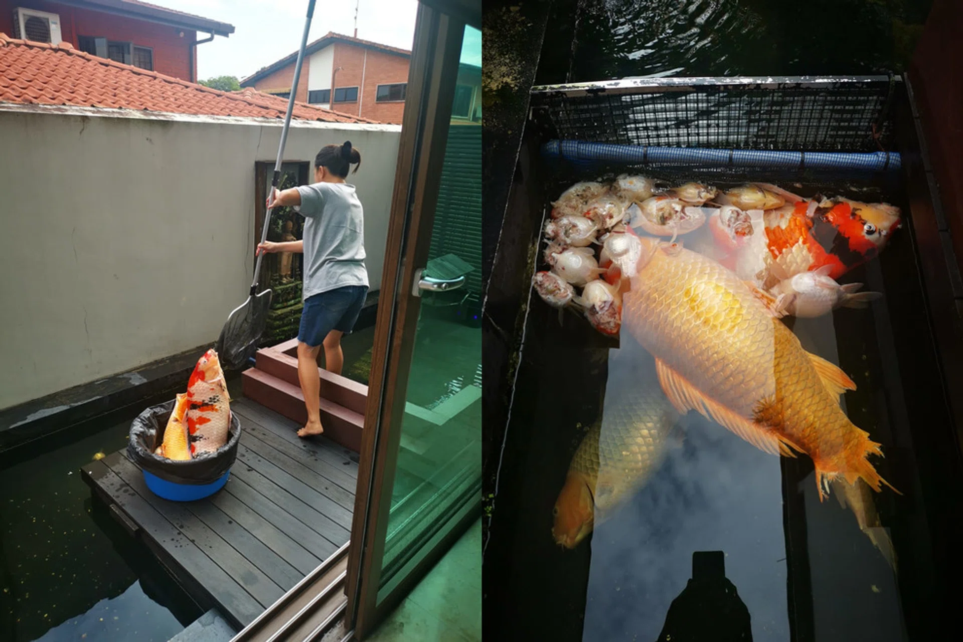 "He could only stand by helplessly as he watched our eight award-winning kois and 50 Tamasabas (giant goldfish) attacked and left for dead," she said.