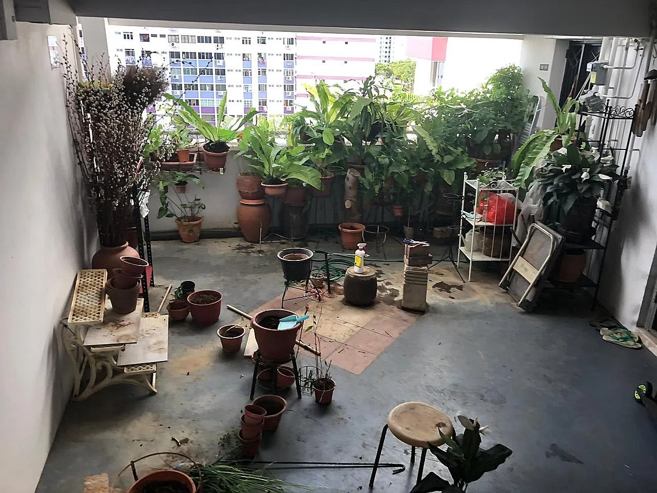 More than half of the potted plants that once crowded a common corridor at a Pasir Ris Housing Board block are gone.