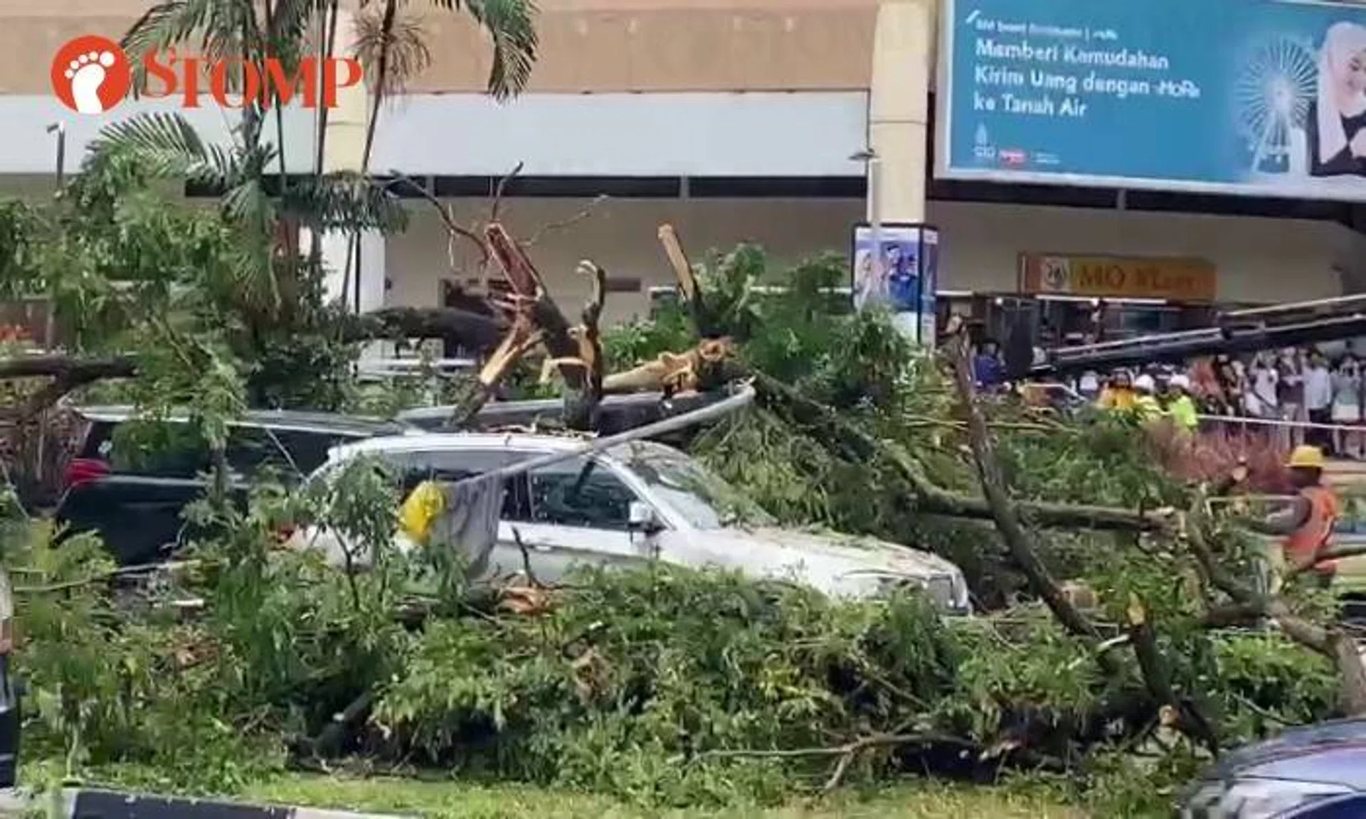 Passers-by rush to help after 20m-tall tree falls on vehicles outside City Plaza