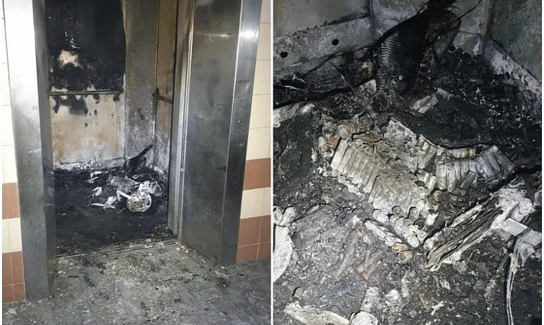 An explosion was heard and Mr Irfan was seen pressing lift buttons on the lower register. The lift door's opened on the second floor and he fled from the burning lift.