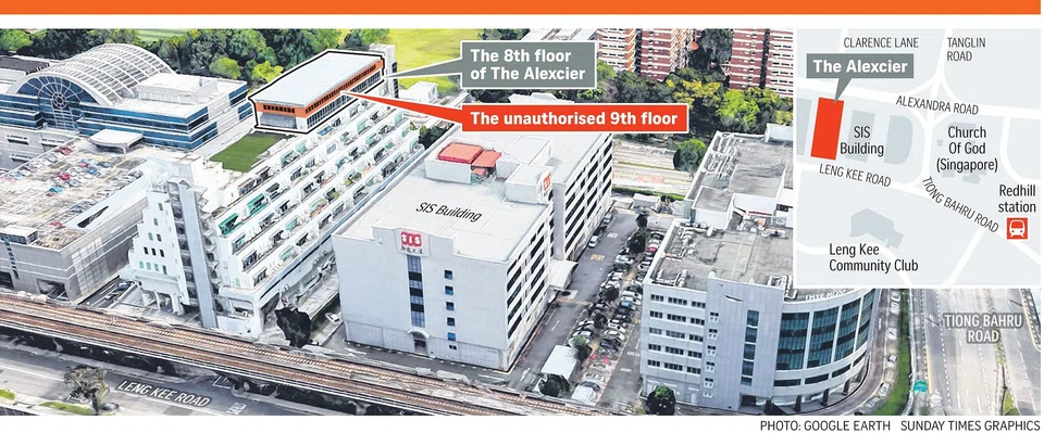 The illicit mezzanine floor, which was built within the eight-floor unit at The Alexcier building in Alexandra Road, was used as a working office and storage area for items such as document files, IT equipment and handyman goods.