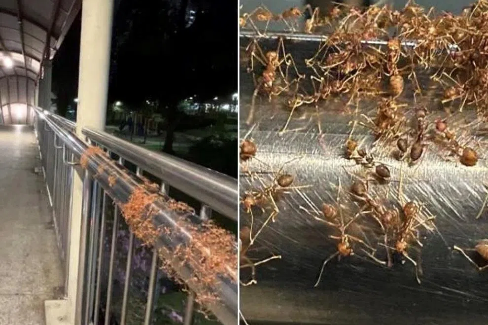 And if you're walking along a specific overhead bridge in Redhill, pay special attention to the handrails. You might just spot a colony of red ants coating a portion of the handrail, just waiting for you to disrupt their peace.