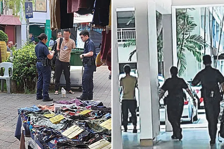 "He was sitting and selling tissue, next to a shophouse when a woman called the police."