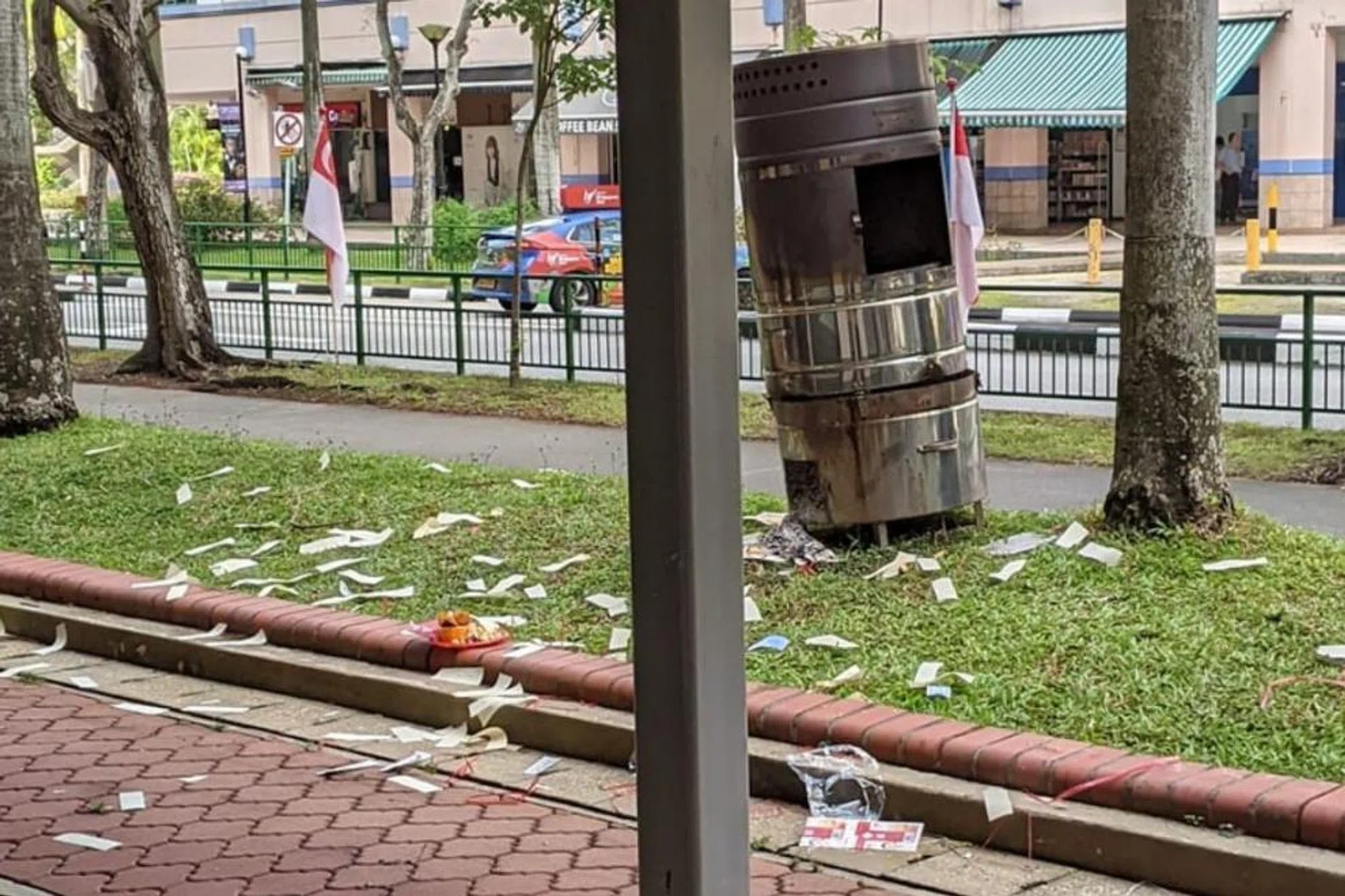 On Thursday (Aug 17), a Facebook user posted a picture of the scene at a grass patch in Tampines. It showed a mess of joss paper scattered around the designated burner.