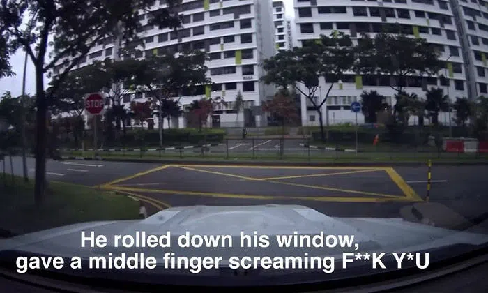 A driver had an unpleasant encounter with another motorist while driving out of his HDB carpark in Tampines on Feb 24.