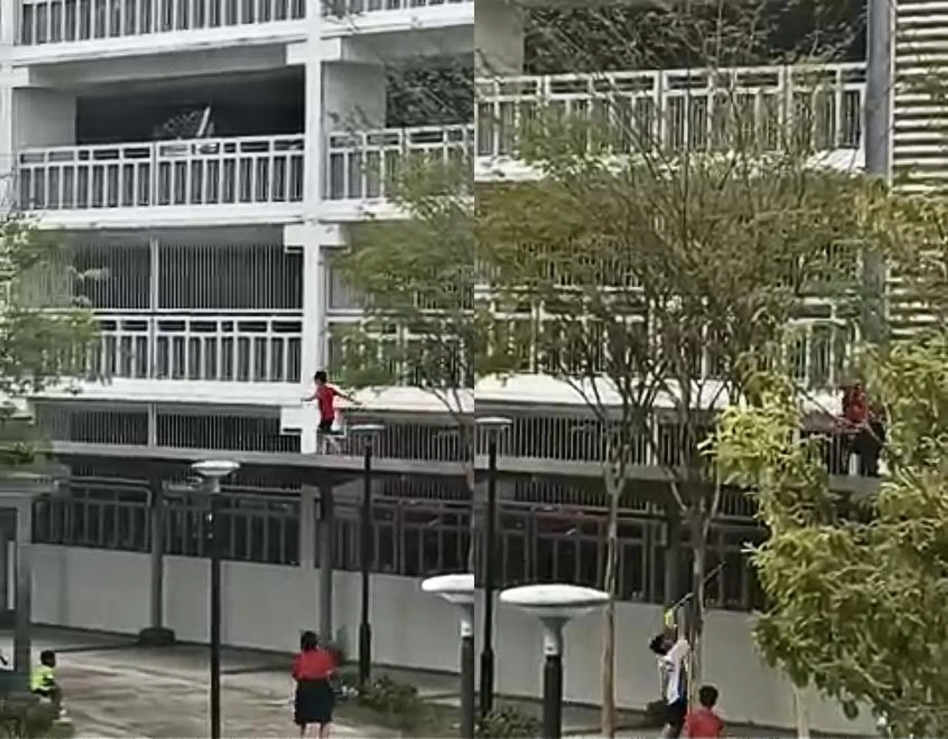 Videos circulating online depict young pupils in Yumin Primary School uniform running on the roof of a covered pedestrian walkway in Tampines.