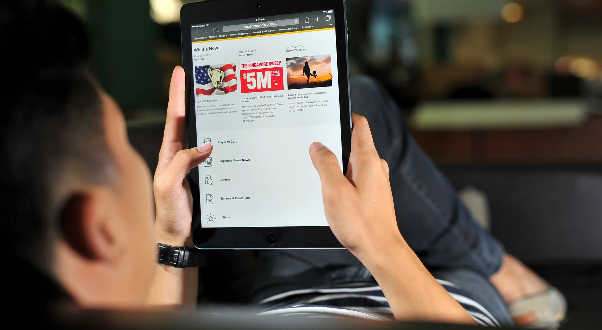 - Singapore Pools: 4D, TOTO, football (including live betting during matches) and motor racing.