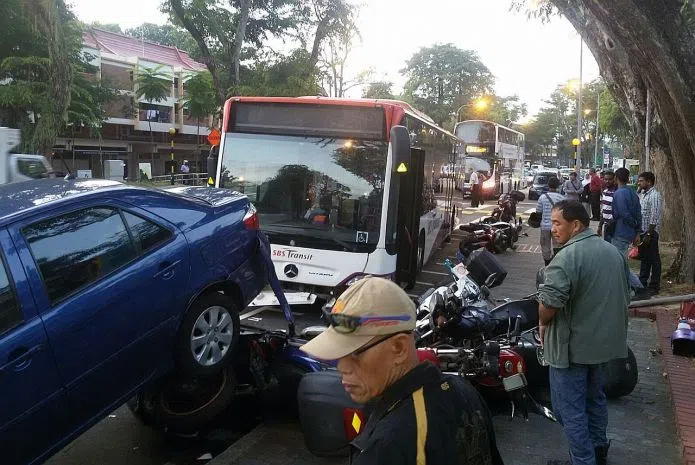 The bus rammed into seven parked motorcycles, including Mr Herman's, sending some of them crashing onto the kerb and the road.