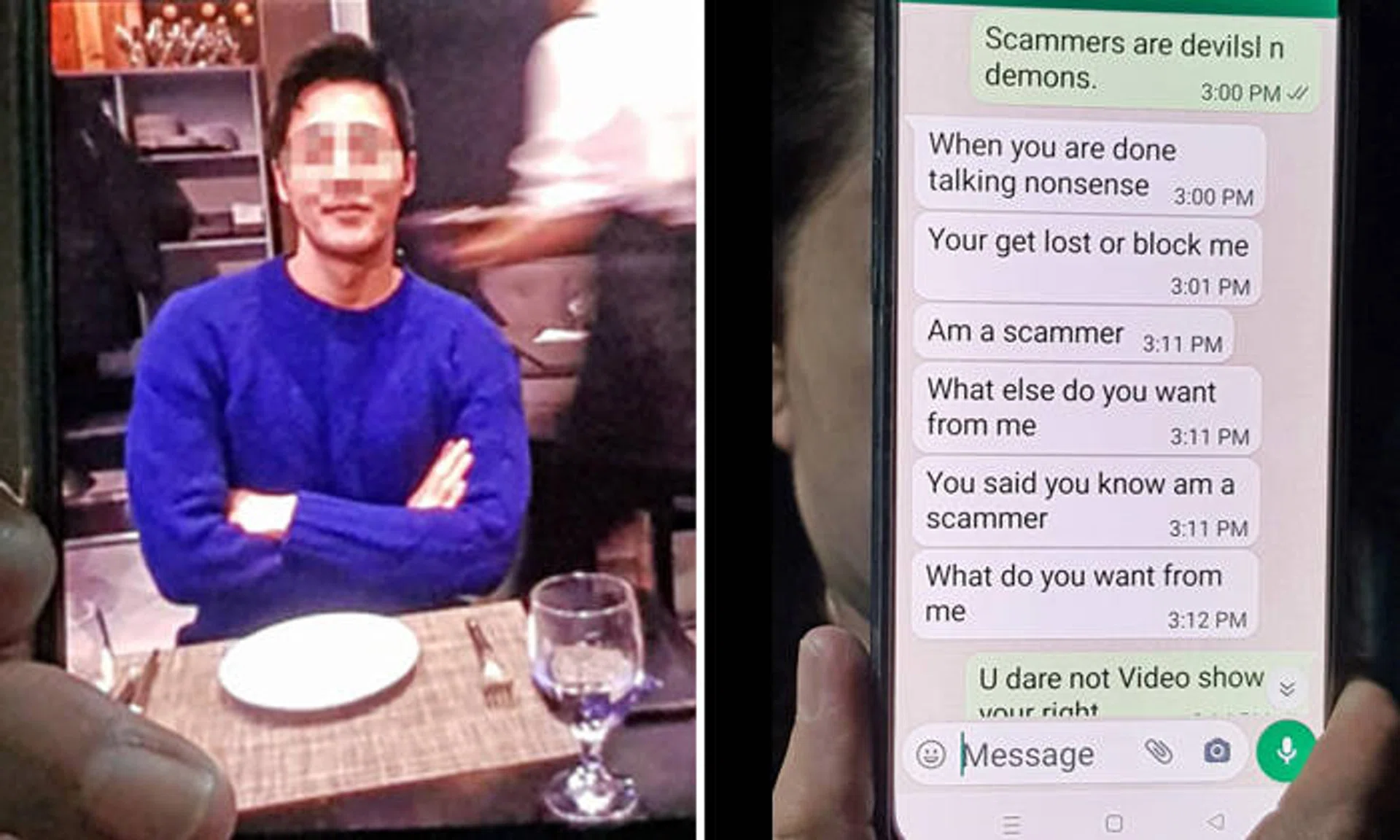Defeated, Ms Wang eventually flew back to Singapore. She called Alvin a scammer and sent text messages cursing him, only for him to reply: "Yes, I am a scammer, what can you do to me?"