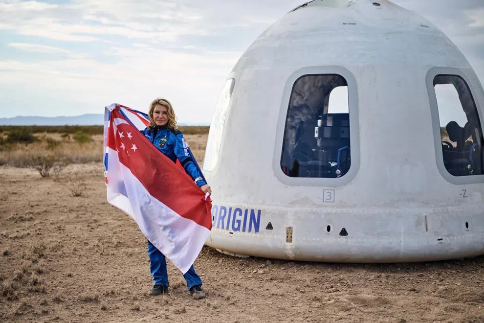 She may not be a citizen yet but she proudly took S'pore flag to outer space