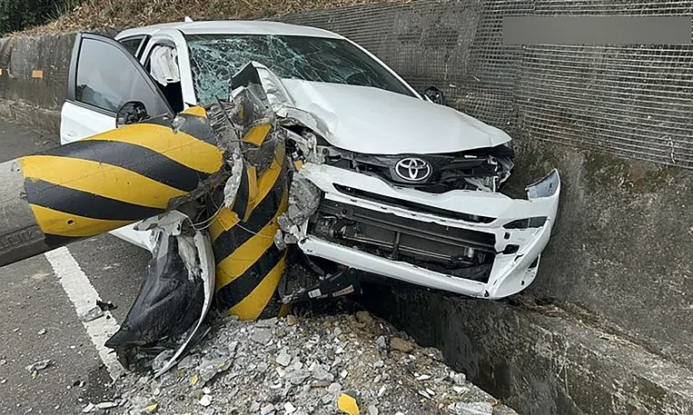 According to news outlet Focus Taiwan, the accident happened around the 114km mark on the highway, where first responders found the car jammed between the pole and a roadside wall.