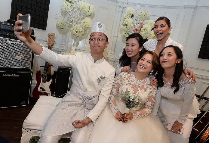 They included close family and friends, theatre veteran Ivan Heng, radio DJ-singer Tabitha Nauser, who was a bridesmaid, and home-grown rappers TheLionCityBoy and Sheikh Haikel.