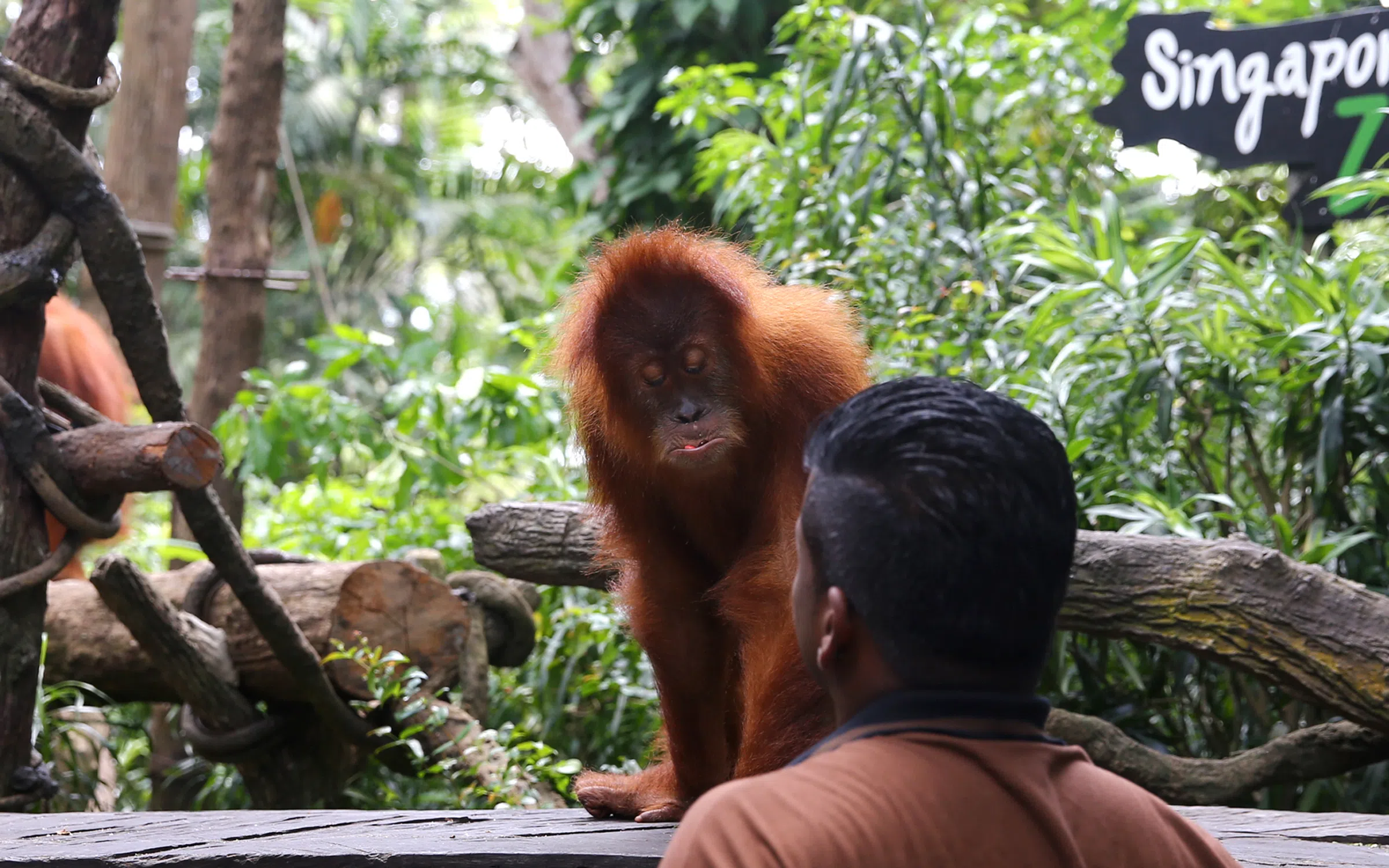 Ah Meng became a national icon when she starred in the Singapore Zoo's Breakfast With An Orang Utan programme, which started in 1982 and allowed visitors to take photos with her.