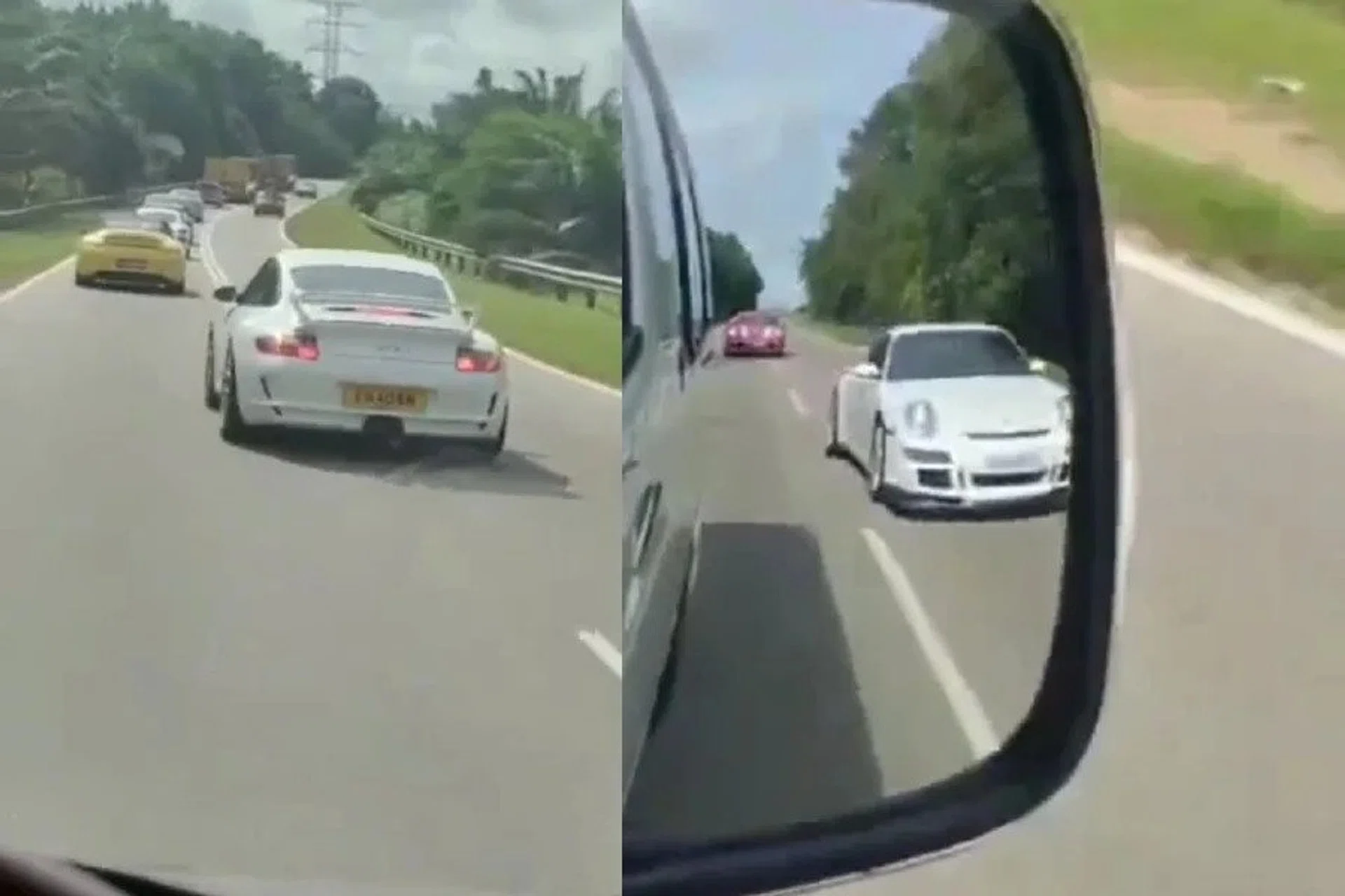 S'pore-registered Porsche convoy driving recklessly on Johor highway wanted by Malaysian police