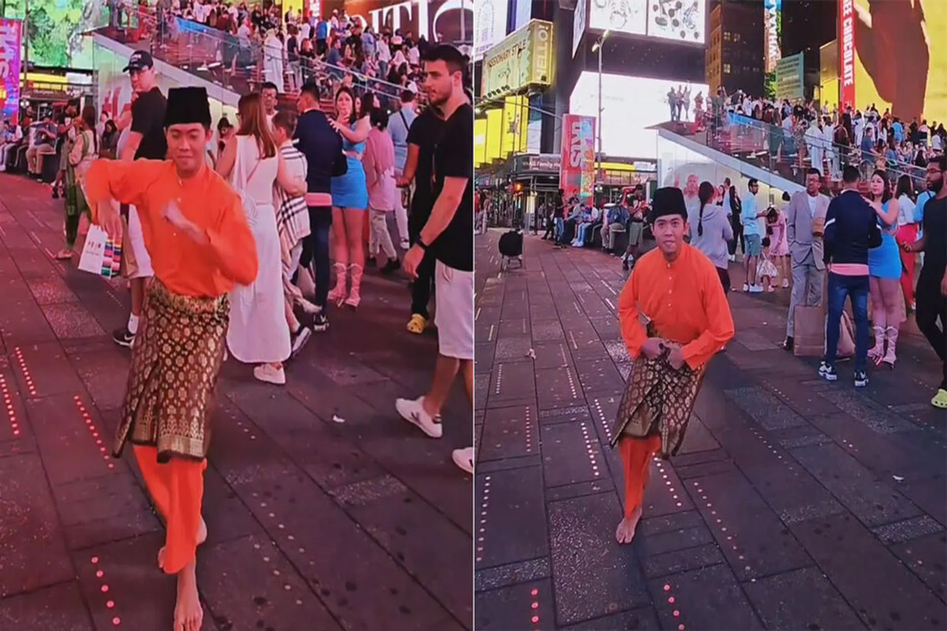 S'porean in Hari Raya garb breaks out in Malay dance at New York's Times Square